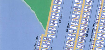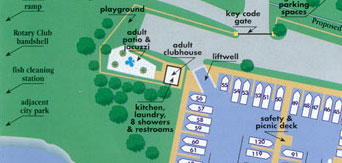 Relief View, Showing Slips and Lifts by Number, Clubhouses, Pools, Facilities, Entry Gates
